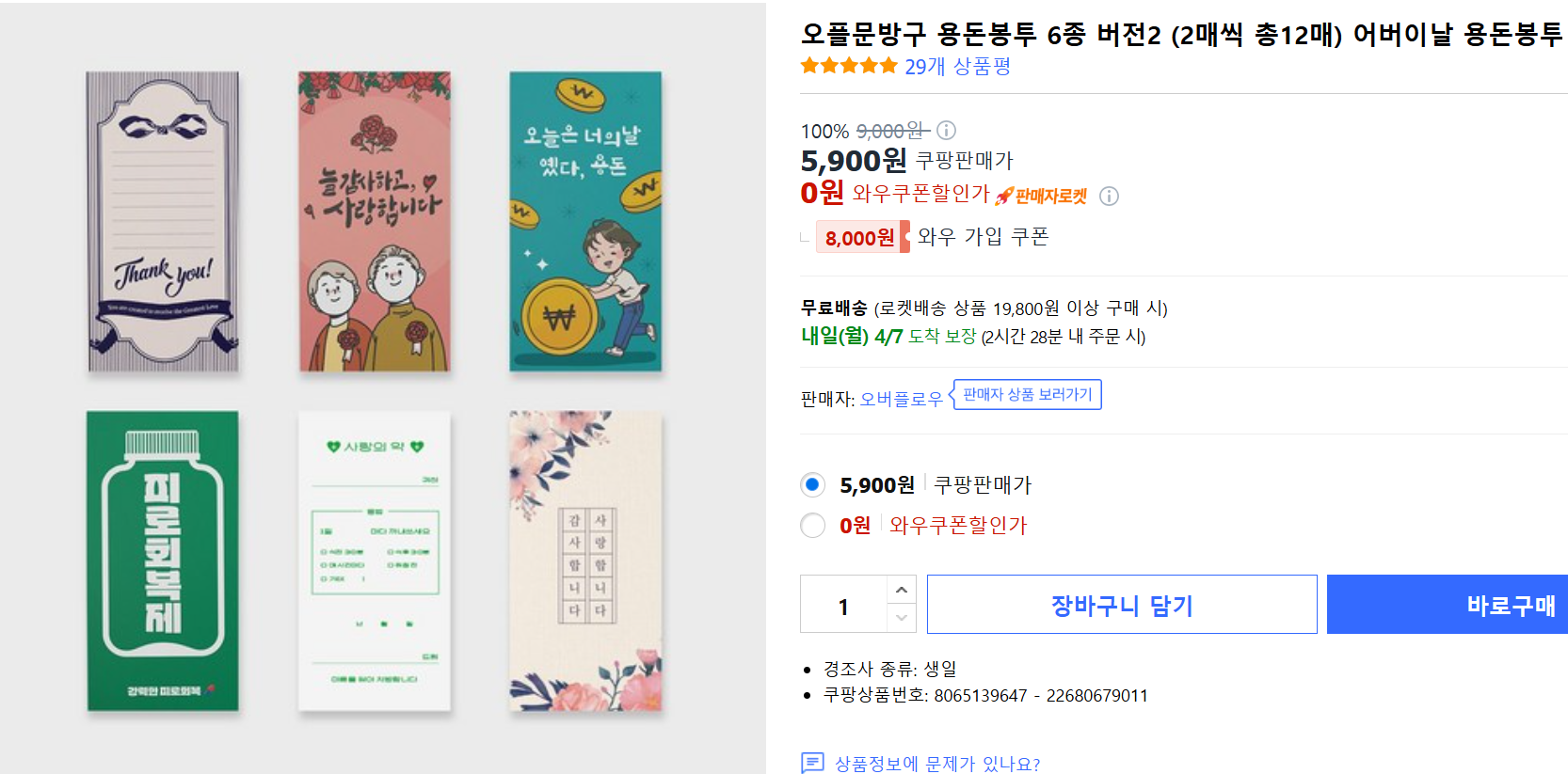 *상품권이나 현금 넣어서 선물하기 좋은 어버이날 봉투 바로가기(링크)