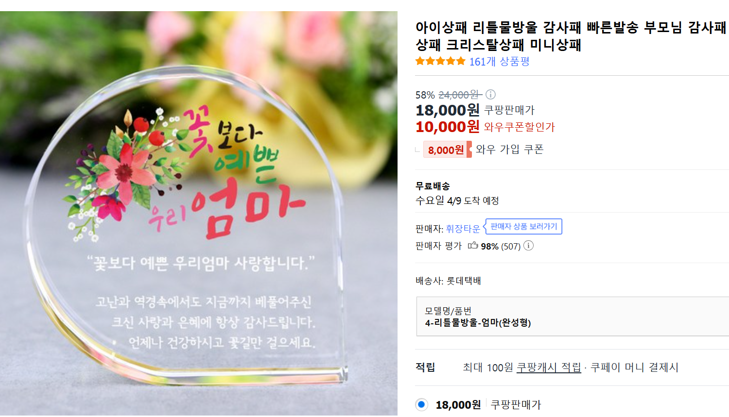 부모님께 감사한 마음을 공식적으로 전할 수 있는 감동적인 아이템으로,